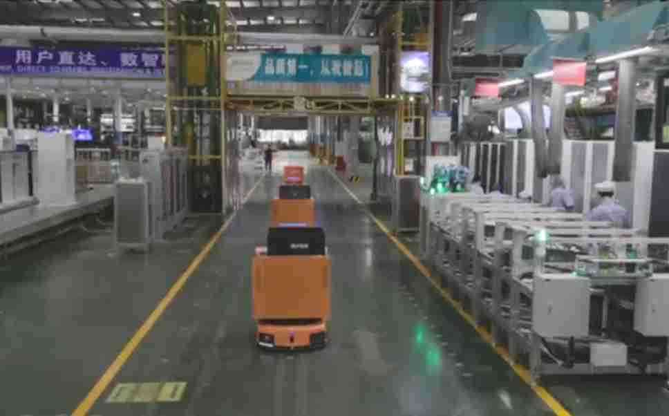 为车载冰箱物流配送打造的智能解决方案,,,,包含产中物流通过潜伏举升AMR搬运至线边,,产后成品物流智能仓储,,流程包含产中物流智能齐套入库,,,,线边安灯叫料AMR智能配送至线边,,,成品入库、、、出库,,,,通过无人堆高车机器人,,智能仓储管理替代人工作业管理,,实现更高存储、、更高效率、、、更具柔性化的解决方案。。。